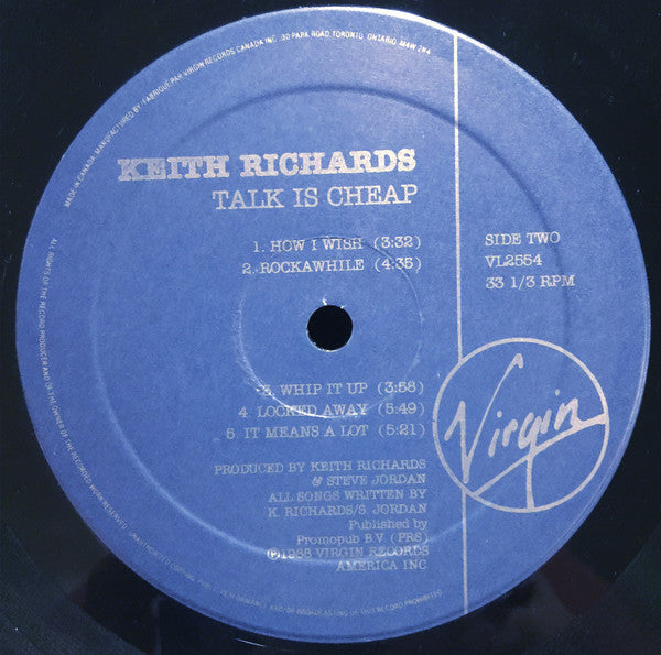 Keith Richards - Talk Is Cheap (LP, Album) (1988) [Used Vinyl]