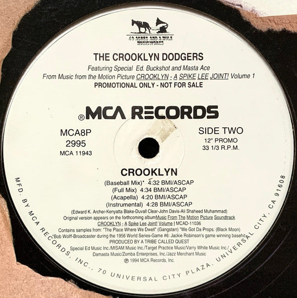The Crooklyn Dodgers* Featuring Special Ed . Buckshot And Masta Ace - Crooklyn (12", Promo) (1994) [Used Vinyl]