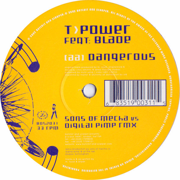 T.Power Feat: Blade - Dangerous (12") (2002) [Used Vinyl]