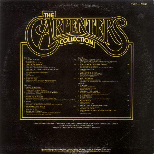 Carpenters - The Carpenters Collection (2xLP, Comp, M/Print, © 1) (1976) [Used Vinyl]