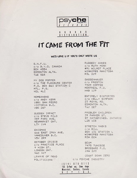 Various - It Came From The Pit (LP, Comp) (1985) [Used Vinyl]